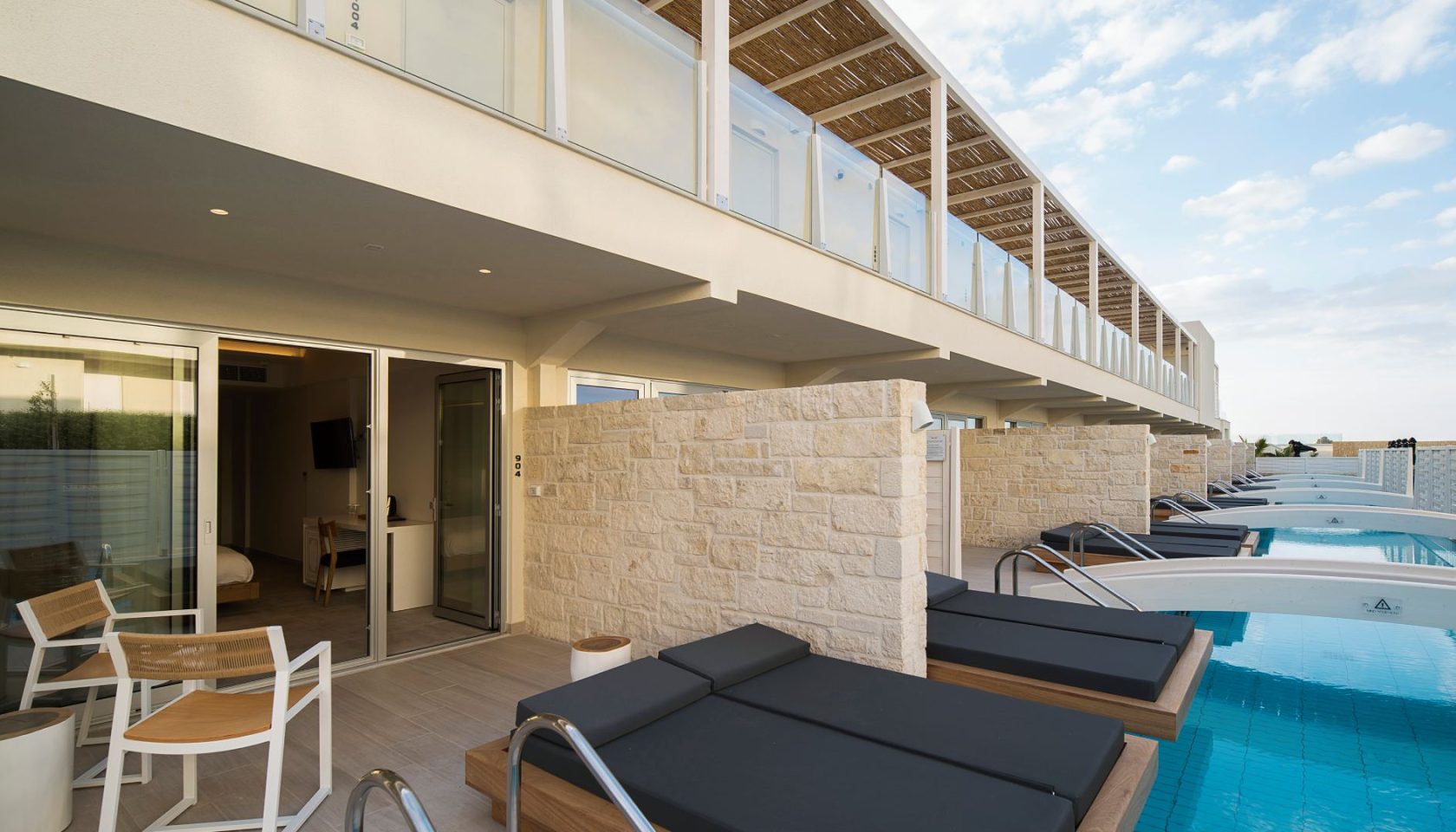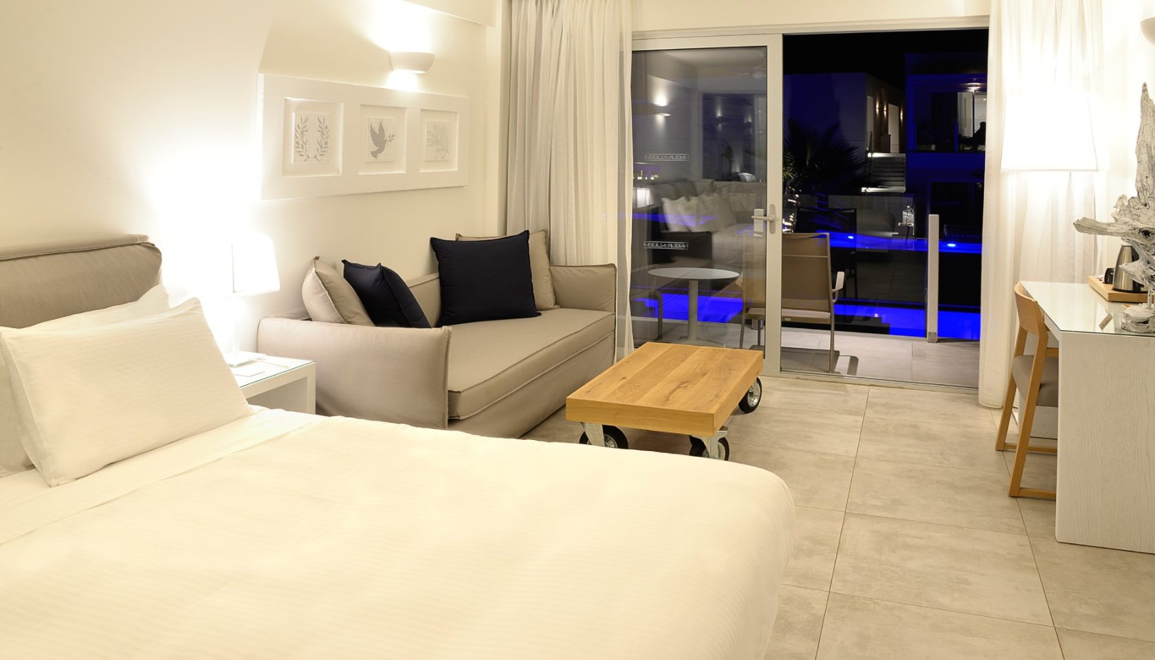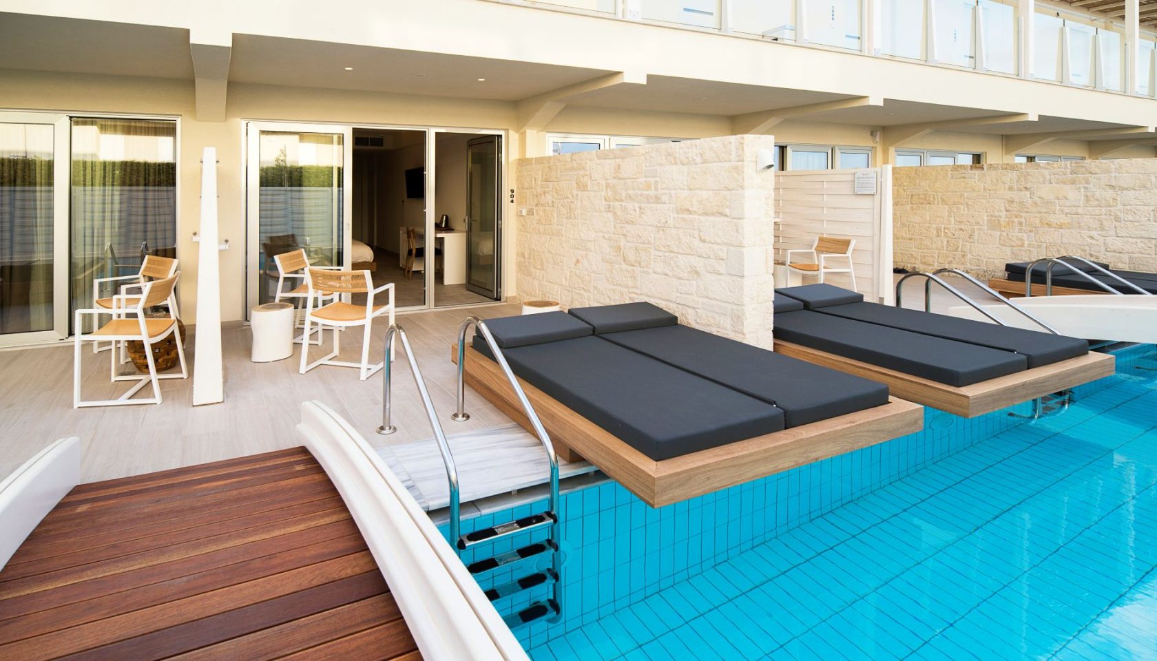 Ανακαλύψτε τα Classic Swim-Up δωμάτια στο χώρο του ισογείου και στον επάνω όροφο, όπου ο μοντέρνος σχεδιασμός αποπνέει μια ατμόσφαιρα απόλυτης κομψότητας. Τα όμορφα αυτά δωμάτια διαθέτουν ένα άνετο king size κρεβάτι, ένα καναπέ-κρεβάτι ή δύο πολυθρόνες και ένα πλήρως εξοπλισμένο μπάνιο με καμπίνα ντους. Αυτό που κάνει αυτά τα δωμάτια να ξεχωρίζουν είναι η άμεση πρόσβαση στην πισίνα-ποτάμι που σας προσφέρει μια ανάσα δροσιάς οποιαδήποτε ώρα της ημέρας. Εκτός από μπαλκόνι, κάθε δωμάτιο διαθέτει βεράντα με ξαπλώστρες, προσφέροντας έναν ήσυχο χώρο για χαλάρωση. Από το πλεονεκτικό αυτό σημείο, οι επισκέπτες μπορούν να χαλαρώσουν απολαμβάνοντας τη θέα στις πισίνες του ξενοδοχείου.