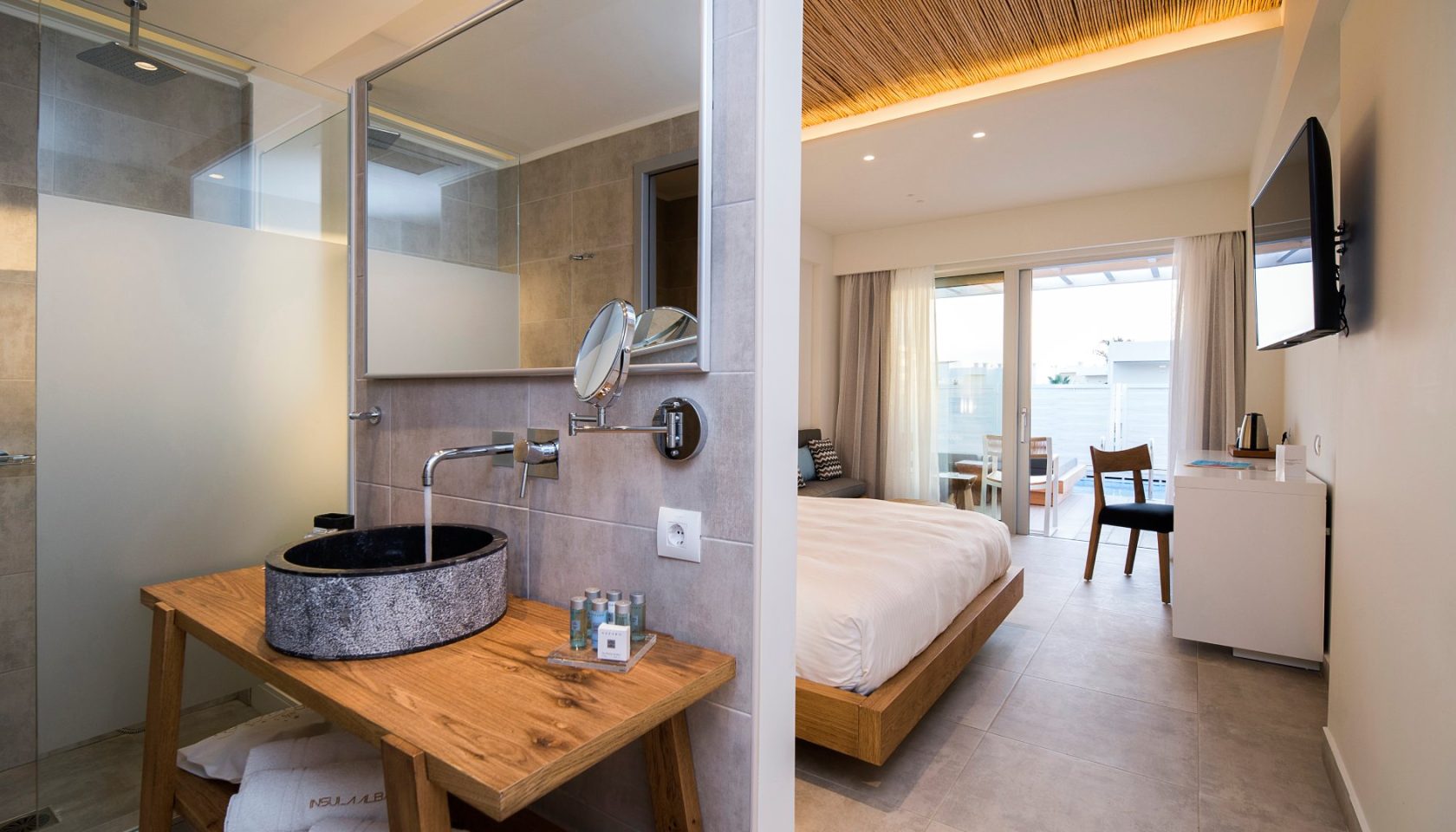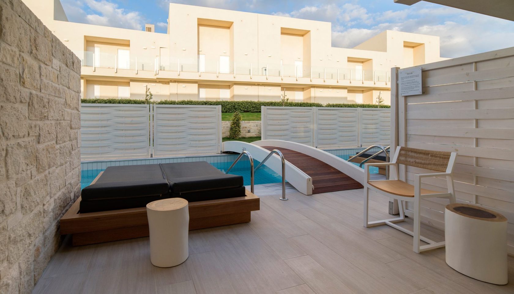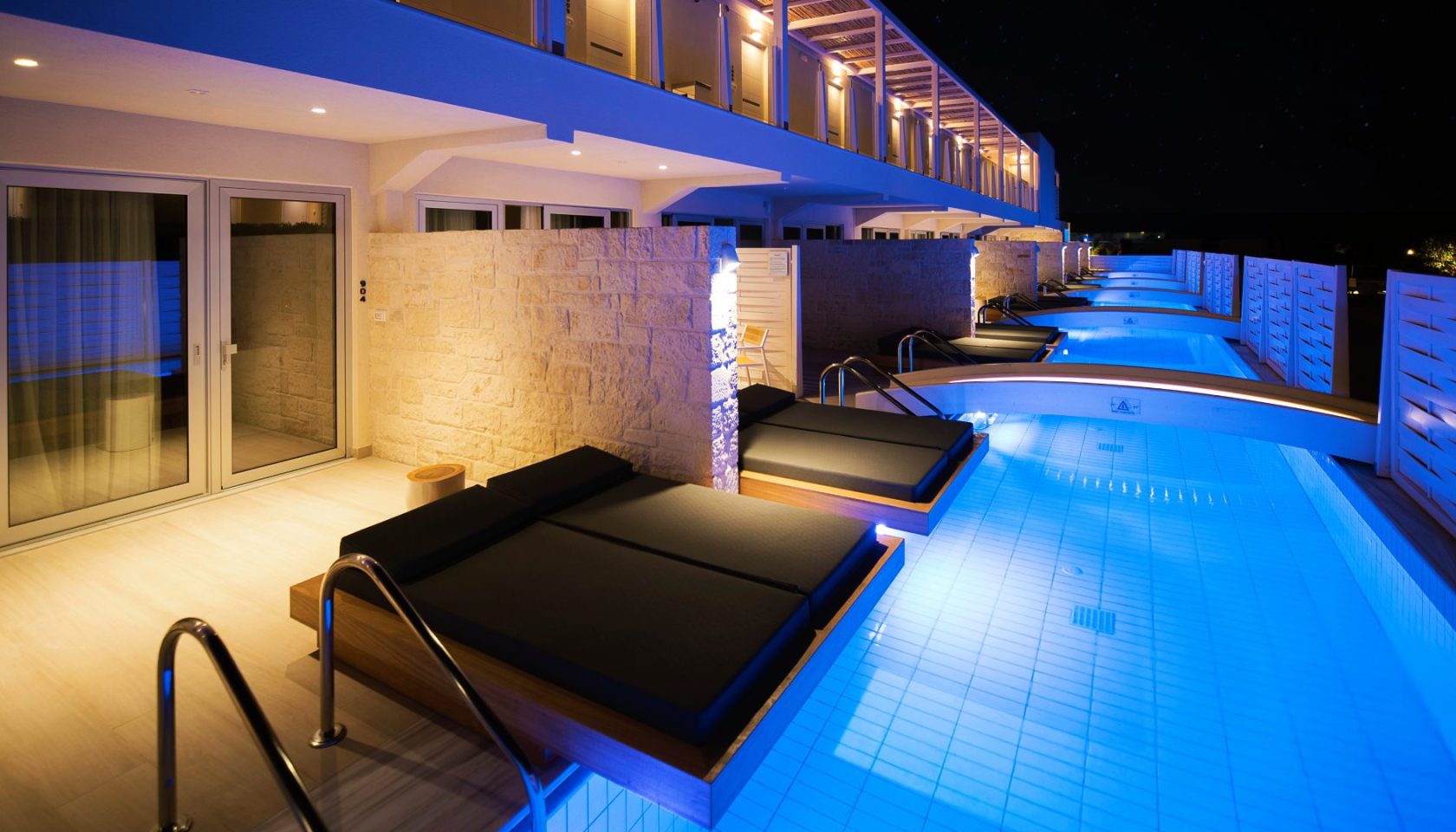 Ανακαλύψτε τα Classic Swim-Up δωμάτια στο χώρο του ισογείου και στον επάνω όροφο, όπου ο μοντέρνος σχεδιασμός αποπνέει μια ατμόσφαιρα απόλυτης κομψότητας. Τα όμορφα αυτά δωμάτια διαθέτουν ένα άνετο king size κρεβάτι, ένα καναπέ-κρεβάτι ή δύο πολυθρόνες και ένα πλήρως εξοπλισμένο μπάνιο με καμπίνα ντους. Αυτό που κάνει αυτά τα δωμάτια να ξεχωρίζουν είναι η άμεση πρόσβαση στην πισίνα-ποτάμι που σας προσφέρει μια ανάσα δροσιάς οποιαδήποτε ώρα της ημέρας. Εκτός από μπαλκόνι, κάθε δωμάτιο διαθέτει βεράντα με ξαπλώστρες, προσφέροντας έναν ήσυχο χώρο για χαλάρωση. Από το πλεονεκτικό αυτό σημείο, οι επισκέπτες μπορούν να χαλαρώσουν απολαμβάνοντας τη θέα στις πισίνες του ξενοδοχείου.